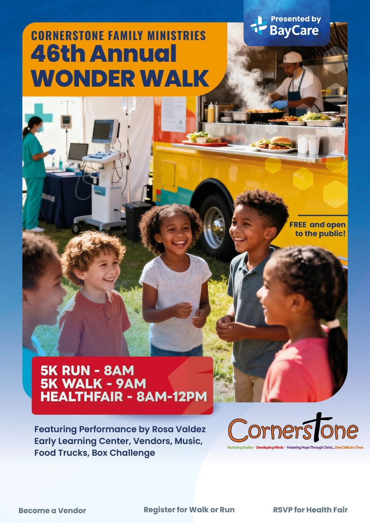 We'd love to see you there! Registration is free and helps us plan for an amazing day. Come enjoy health screenings, live performances, food trucks, music, and more — all with your family and community.